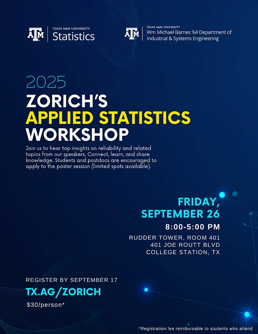 Workshop to be held in 2025 at Texas A&M, organized by A&M’s Statistics Department, and funded by John Nicholas Zorich.
